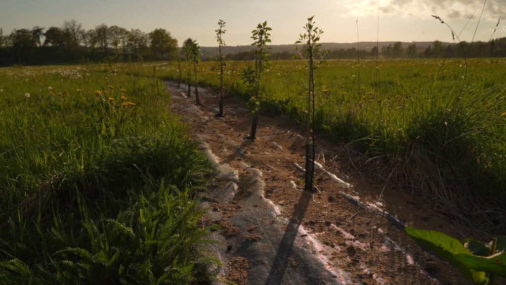 Med hjälp av Jordbruksverkets projektstöd ”Kunskapsstärkande insatser för att öka konkurrenskraften inom frukt-, bär- och grönsaksodling” som Agroforestry Sverige beviljades under slutet av 2021 har vi nu tre kortfilmer i produktion, med syftet att visa på olika svenska agroforestrysystem; fleråriga grönsaker och perenna (småskaliga) odlingssystem, allésystem (större system) med gröda mellan rader av fruktträd samt skogsbete i form av rotationsbete av kor och höns (på sikt i) allésystem av nöt- och fruktträd. Bilderna: Kyrkbygård, Slättåkra utanför Halmstad. Tack Jesper, Tor och Kamiel!
