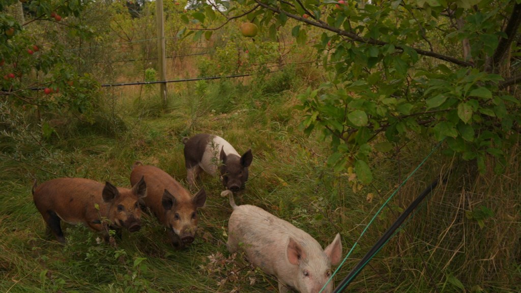 Bilder från tidigare kurstillfälle i september 2022 på Stora Juleboda Gård med inriktning på Agroforestry, en av de tolv gårdar som under tre år testar och utvärderar olika lagringsmetoder. På gården samodlas äppel-, päron- och plommonträd med havtorn, hallon och blåbärsbuskar mm. Mellan träden prioriteras nässlor, våtarv, kärringtand, vitklöver, honungsört och maskrosor. Höns, grisar och får går på skogsbete mellan trädraderna.