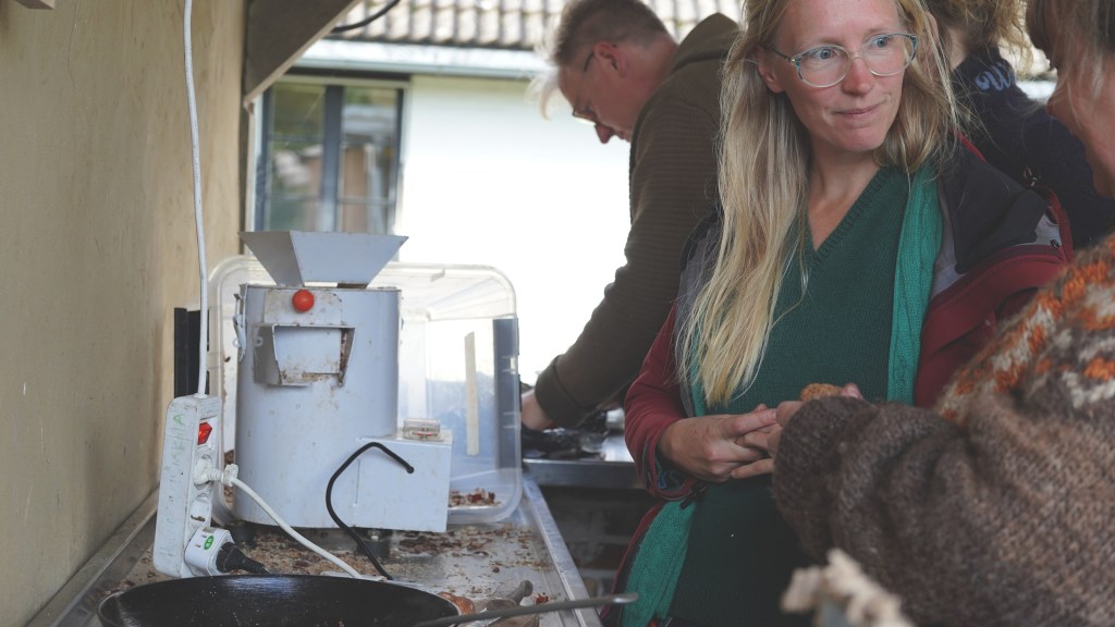 Bilder från en deltagardriven Nötnätverkardag på Holma Folkhögskola den 15 oktober 2023: Galetter på äkta kastanj, (till vänster) Hanna Jönsson, Under Eken/Skogsträdgårdens växter och (till höger) kocken Anna Mårtensson som älskar kastanjer och vill sprida kunskap om hur de kan tillagas för att inta en självklar plats på våra tallrikar. Recept: 2,5 dl kastanjemjöl (alternativt hälften ekollonmjöl) 3 dl vatten, 1-2 ägg från glada höns, en nypa salt, vispa ihop, låt svälla några minuter. Stek i valfritt matfett. Tips till: Päronkompott! Recept: tärnad päron, socker (gärna muscavado) en nypa vaniljpulver, koka ihop tills päronet mjuknat.