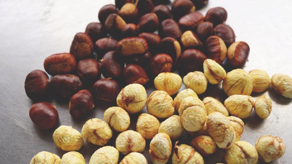 Äkta kastanj före och efter maskinskalning.